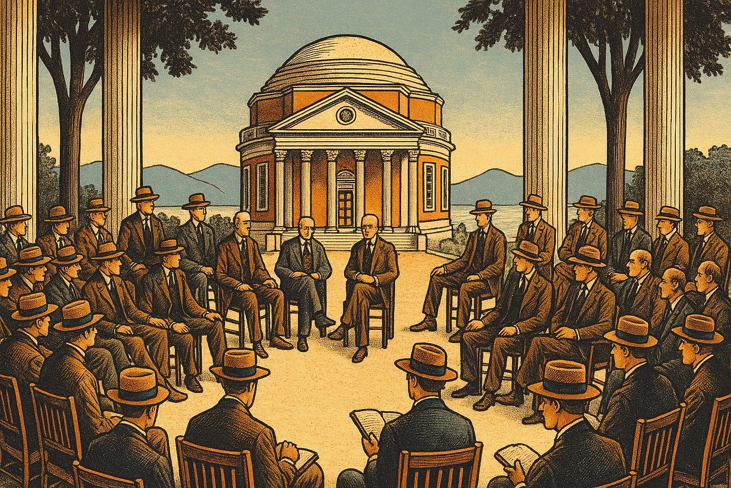 It was further dignified by having no program that would too severely afflict the guests with a sense of duty to art or to civilization. And perhaps it had no purpose—could have none, in fact, other than to bring the writers together under just the pleasant and stately circumstances that only Mr. Jefferson’s university, possibly, could offer, and then to let happen what would. A great deal happened, both to the advantage and the pleasure of the guests. But it is no easier to interpret the gathering than to name it. I shall have to be reportorial rather than interpretative, circumstantial rather than speculative, in this account.
