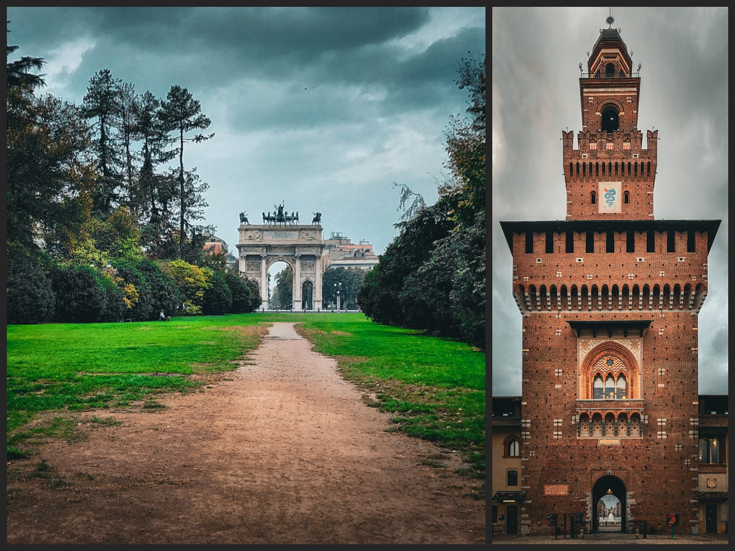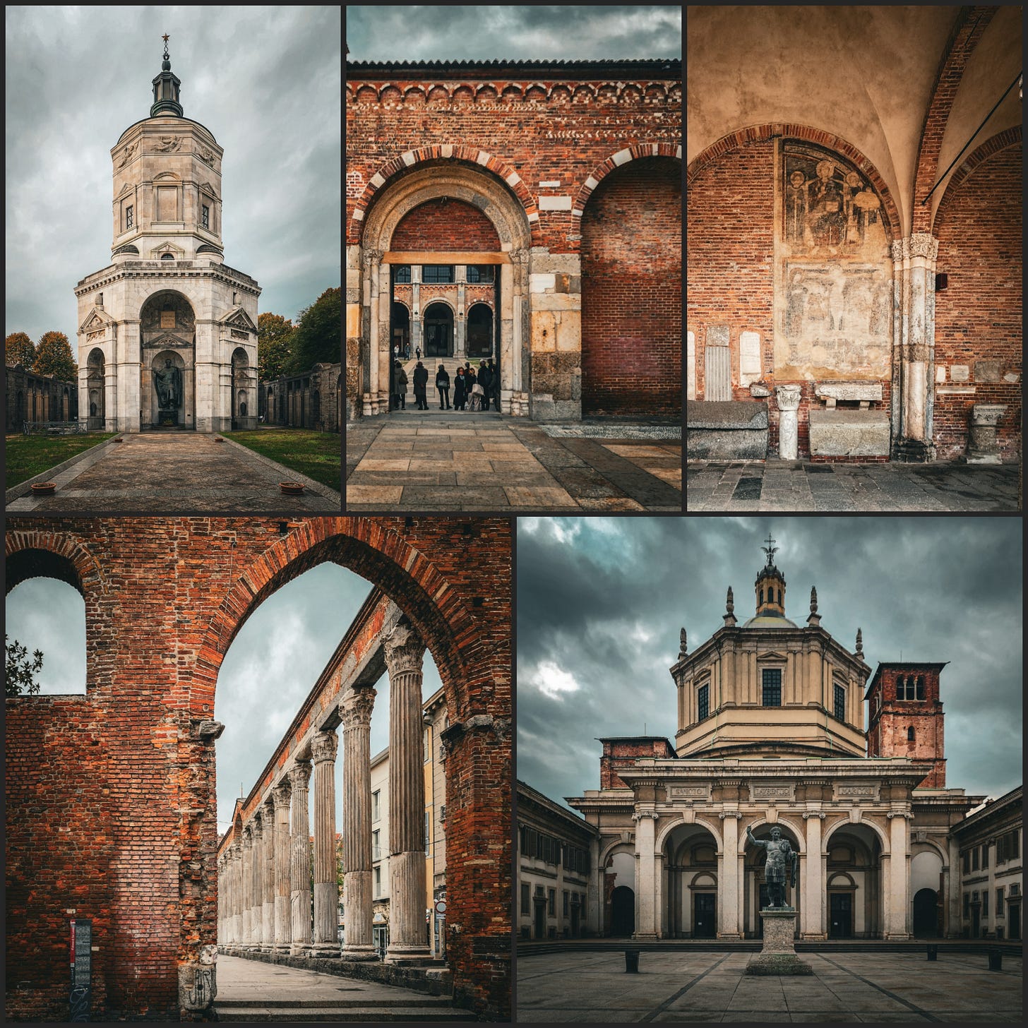 A train to Genoa left in the afternoon. The morning belonged to whatever we could cover on foot. Camera in hand, turning where the street turned, stopping when something stopped me. At the Colonne di San Lorenzo, sixteen Roman columns stood in their original alignment on a city street, a parking sign and graffiti visible through the colonnade. The columns date to the second or third century AD. Milan built around them the way a river builds around a rock.