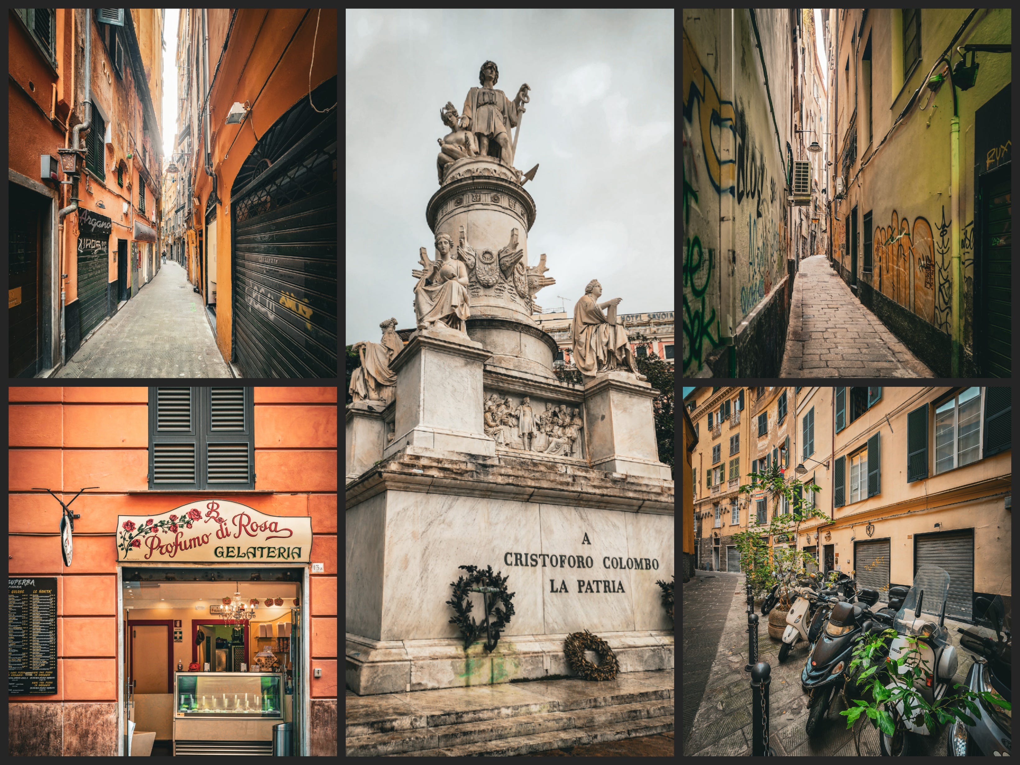 Genoa drops from the Apennines to the Ligurian Sea in a crescent of stone. The mountains crowd the harbor, the city built upward. Narrow alleys called caruggi run between the waterfront warehouses and the churches and palaces above, six feet wide in places, vaulted in stone, the upper floors close enough to block the sky. The Romans knew it as Genua. During the Second Punic War, Scipio landed here. Mago Barca ravaged the city. Rome rebuilt it as a military base for campaigns against the Ligurian tribes. Genoese fleets sailed east in the age of the Crusades. Columbus was born here.