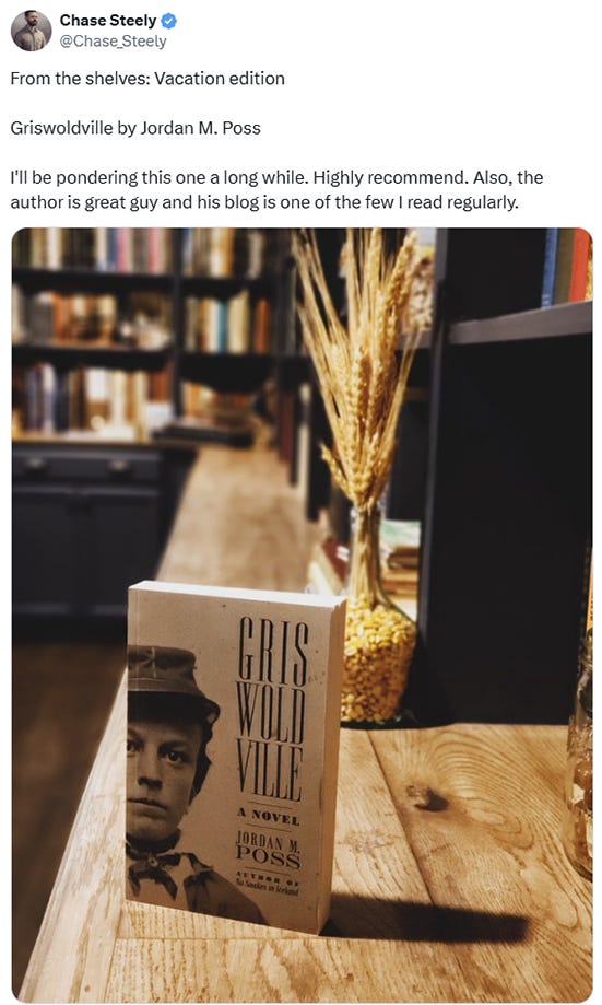 This project wouldn’t exist without Jordan Poss. I’d spent years reading, collecting, and researching, but never felt compelled to write—until one day I did. I came across Professor Poss’s blog while following a trail I couldn’t retrace now. His writing inspired me to reach out, and his thoughtful advice helped lead to this Substack. Thank you, Sir. You can read his work and find his books at Jordan M. Poss dot com. He also writes the Quid Substack.